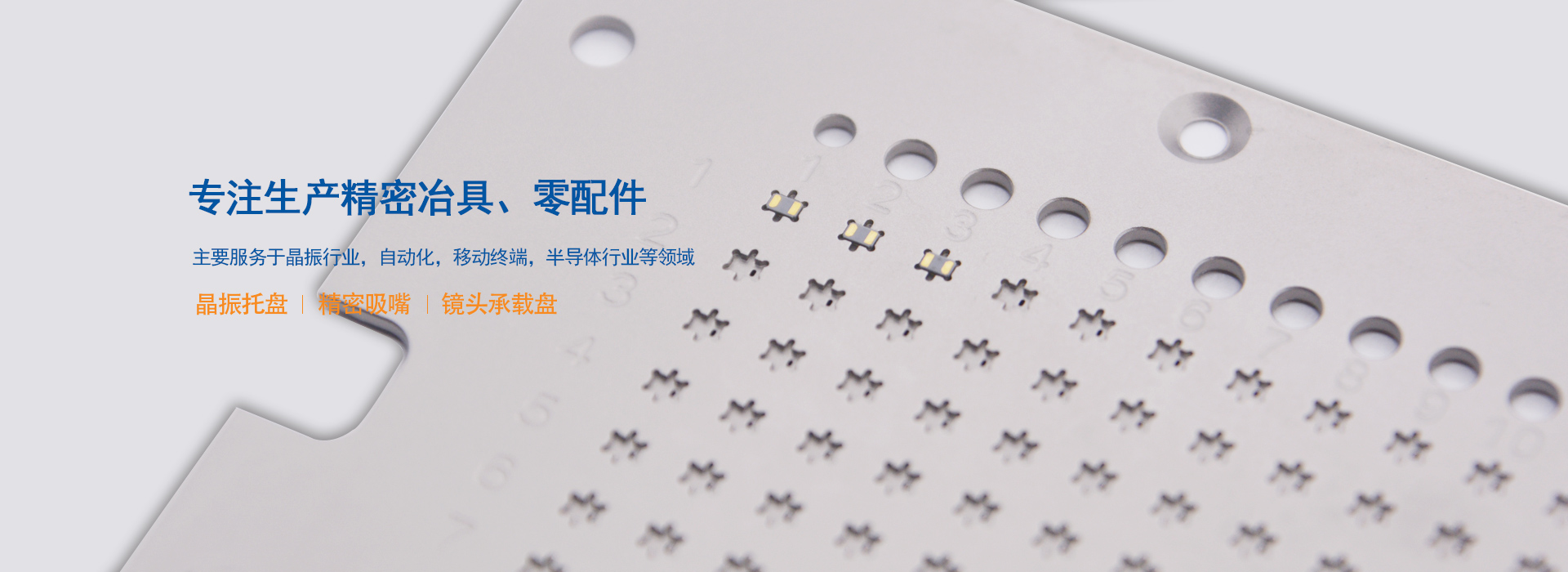 無錫吉微精密電子有限公司專業(yè)生產精密冶具、零配件等以及從事精密冶具配套設備生產的高新技術企業(yè),公司自2013成立以來,建立國際標準化管理體系,2018年曾通過ISO9001:2015質量體系認證。同時獲得“國家科技型中小企業(yè)”榮譽證書,包括專利證書已經50+。主要供應:晶振托盤、精密吸嘴、鏡頭承載盤等。